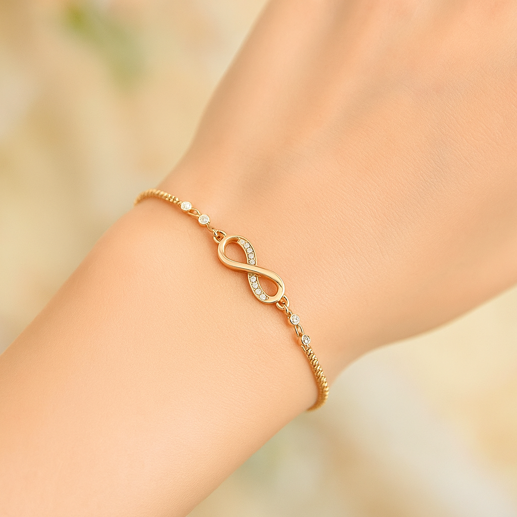 Celebrate everlasting elegance with the Opulent Infinity Bracelet—a refined piece that blends symbolic beauty with radiant charm. At its center lies a graceful infinity symbol, encrusted with delicate, glistening stones that capture the light from every angle. Crafted in polished gold tones and finished with a sleek adjustable chain, this bracelet is both meaningful and effortlessly chic. Whether it’s a symbol of forever love, friendship, or self-belief, the Opulent Infinity Bracelet is a sophisticated addition to any jewelry collection, ideal for both everyday wear and special occasions.