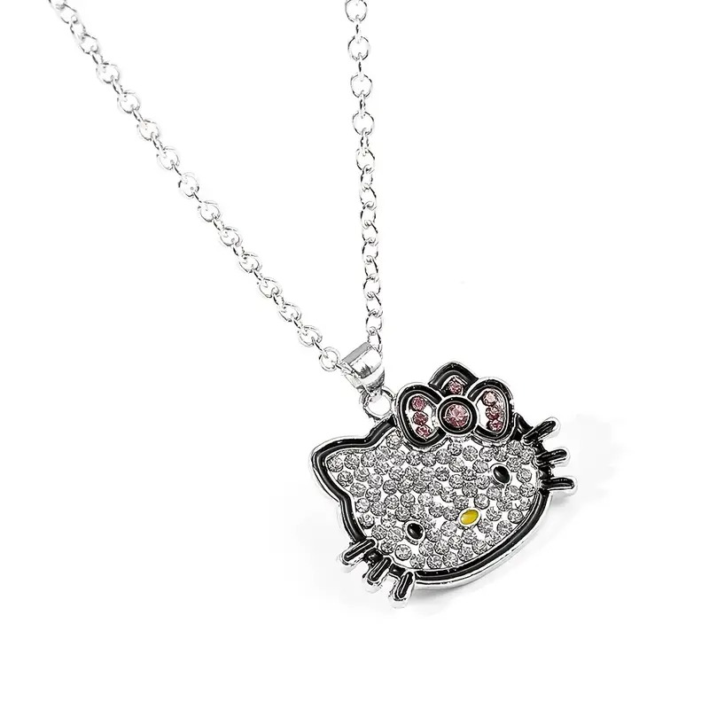 The Sparkle Kitty Pendant is the ultimate accessory for anyone who loves a touch of whimsy and shine. Shaped like an adorable cat face and encrusted with shimmering clear stones, it features a delicate pink crystal bow for an extra dash of sweetness. Crafted in a silver-tone finish with a sturdy chain, this necklace is perfect for adding fun, flair, and sparkle to everyday looks or special occasions. Ideal for gifting to little fashionistas or Hello Kitty fans alike!